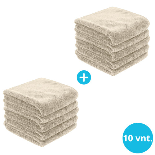 Mūsų 600 gsm mikropluošto džiovinimo šluostės yra storesnės ir sugeria daugiau drėgmės (net iki 800 ml) nei įprastos šluostės. Dėl didesnio tankio jos sugeria kelis kartus daugiau vandens nei pačios sveria, todėl džiovinimas tampa greitesnis ir efektyvesnis. Jos yra itin minkštos ir saugios jautriems paviršiams, tokiems kaip automobilio dažai ar veidrodžiai – nepalieka įbrėžimų ar dryžių. Be to, mūsų šluostės yra ilgaamžės ir net po daugelio skalbimų išlaiko savo sugeriamąsias savybes. Įprastos šluostės, kurios dažniausiai būna plonesnės ir mažiau sugeriančios, greičiau susidėvi ir yra mažiau efektyvios valant bei džiovinant didelius paviršius.